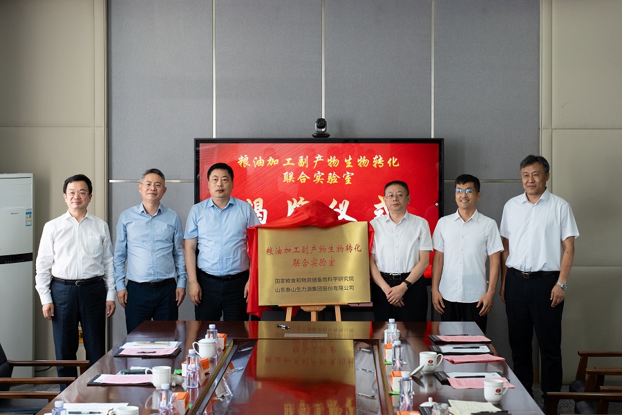 8月26日,国家粮食和物资储备局科学研究院与山东泰山生力源集团股份有限公司签署粮油加工副产物生物转化联合实验室共建合作协议。国家局总工程师、院党委书记滕增泰,泰安高新区党工委书记、管委会主任宋鸿鹏,生力源公司总裁徐启民出席签约仪式,并共同为联合实验室揭牌??蒲а芯吭焊痹撼で衿剑υ垂靖弊懿美罹捣直鸫硭降ノ磺┰?。院首席科学家李爱科参加签约仪式。